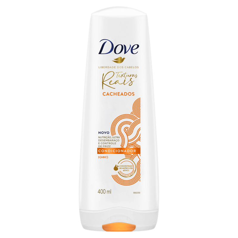• O Condicionador Dove Texturas Reais Cacheados garante nutrição, ultra desembaraço e controle de frizz aos seus cabelos