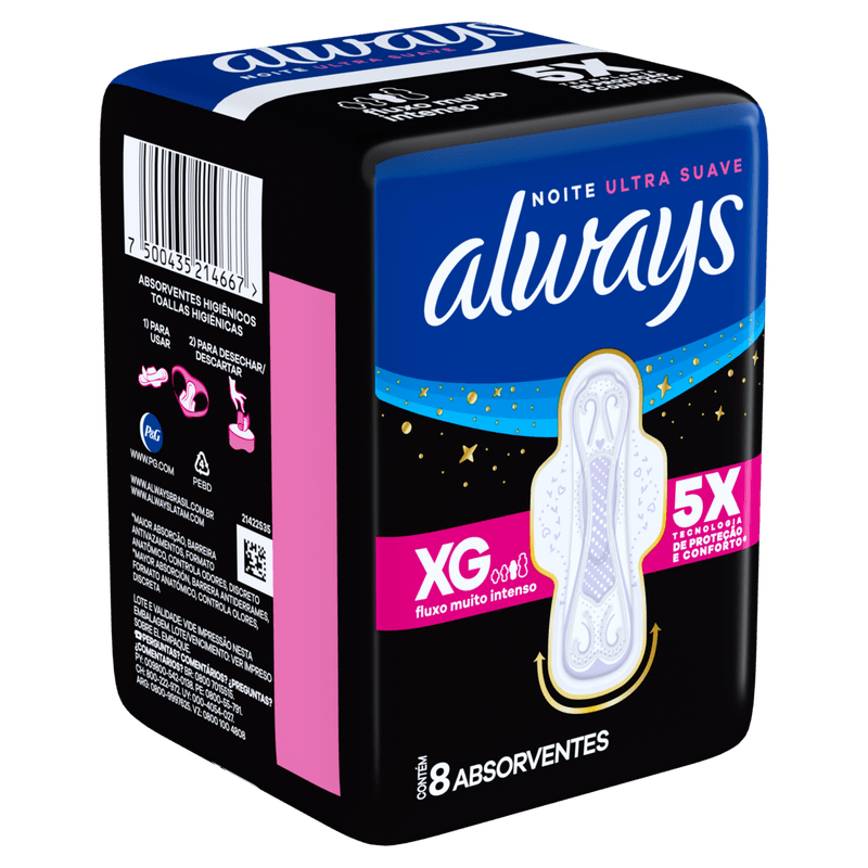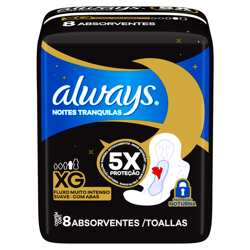 Absorvente Always Noites Tranquilas Suave com Abas XG - 8 unidades