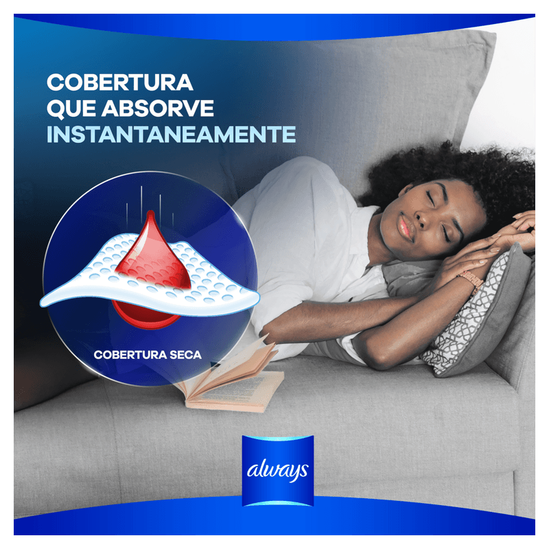 Com cobertura seca, oferece uma rápida e poderosa Absorventeorção, com pérolas de gel. Um Absorvente criado para garotas ativas que têm sua agenda lotada e nunca interrompem seu dia, nem mesmo naqueles dias. Garante proteção máxima com total tranquilidade.