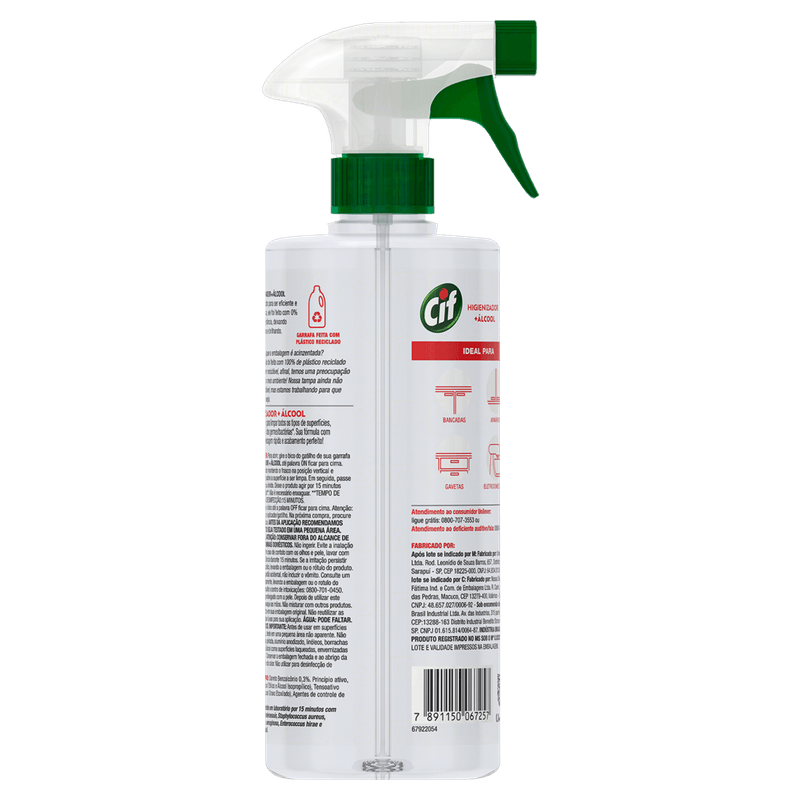 O nãovo Cif Higienizador + Álcool é um produto único, que possui uma fórmula inãovadora, com agentes de limpeza, que higieniza de forma super profunda e possui uma secagem rápida. Além disso, possui 0% de corantes e perfumes e mata 99% de germes e bactérias. Assim, você vai deixar todas as suas superfícies limpas e bem cuidadas. Com Cif Higienizador + Álcool, você vai poder cuidar de toda sua casa para que ela fique do jeito que você gosta e com proteção garantida. Dessa forma, você pode limpar os armários, bancadas, gavetas e os eletrodomésticos da sua casa, com um único e poderoso produto.