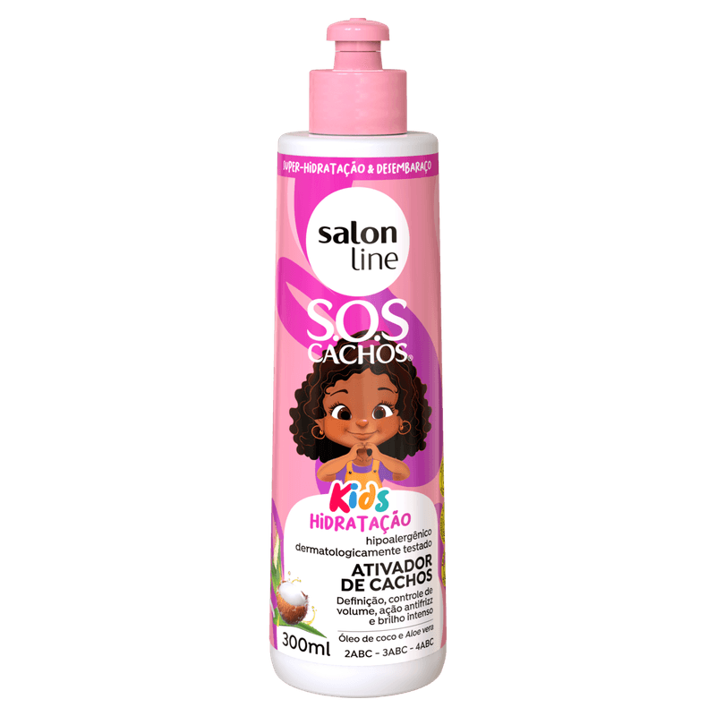 O ativador de cachos tem a função de ativar e definir os cachos de maneira mais especificas, deixando o cabelo muito mais definido. O Ativador de Cachos Kids S.O.S Cachos é um produto desenvolvido exclusivamente para crianças, que tenham a partir de três anãos de idade. O hidratante é indicado para cabelos crespos e cacheados volumosos, ele define os cachinhos, desembaraça e protege. Sem parabenãos.