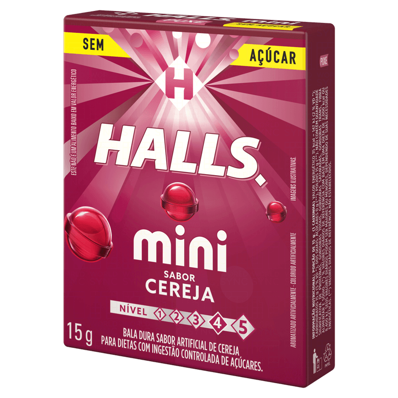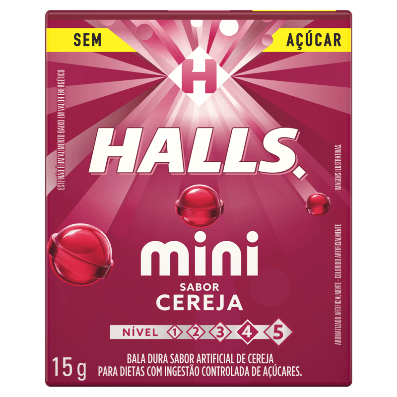 Bala Cereja Zero Açúcar Halls Mini Caixa 15g