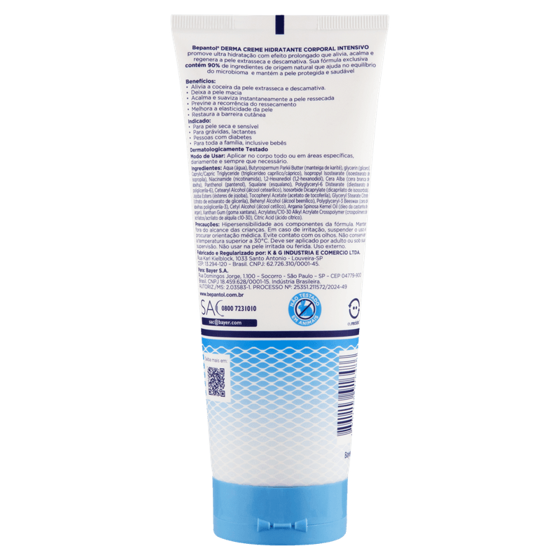A Loção Corporal Bepantol Derma Hidratante Restaurador 200 mL é ideal para peles secas e sensíveis, oferecendo hidratação imediata e duradoura por até 48 horas. Sua fórmula enriquecida com Niacinamida (vitamina B3), Dexpantenol (vitamina B5), óleo de argan e manteiga de karité promove renovação celular e reposição dos lipídios naturais da pele, deixando-a macia, suave e protegida contra o ressecamento.