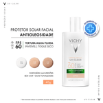 O Protetor Solar Facial Aqua-Fluido Antioleosidade Vichy FPS 60 oferece proteção avançada contra os raios UVA e UVB, com ação antioxidante e tecnologia anti-UV Netlock DRY™. Sua textura aqua-fluida de rápida absorção proporciona efeito matte por até 12 horas, controlando a oleosidade e prevenindo imperfeições, ideal para peles oleosas e com tendência à acne.