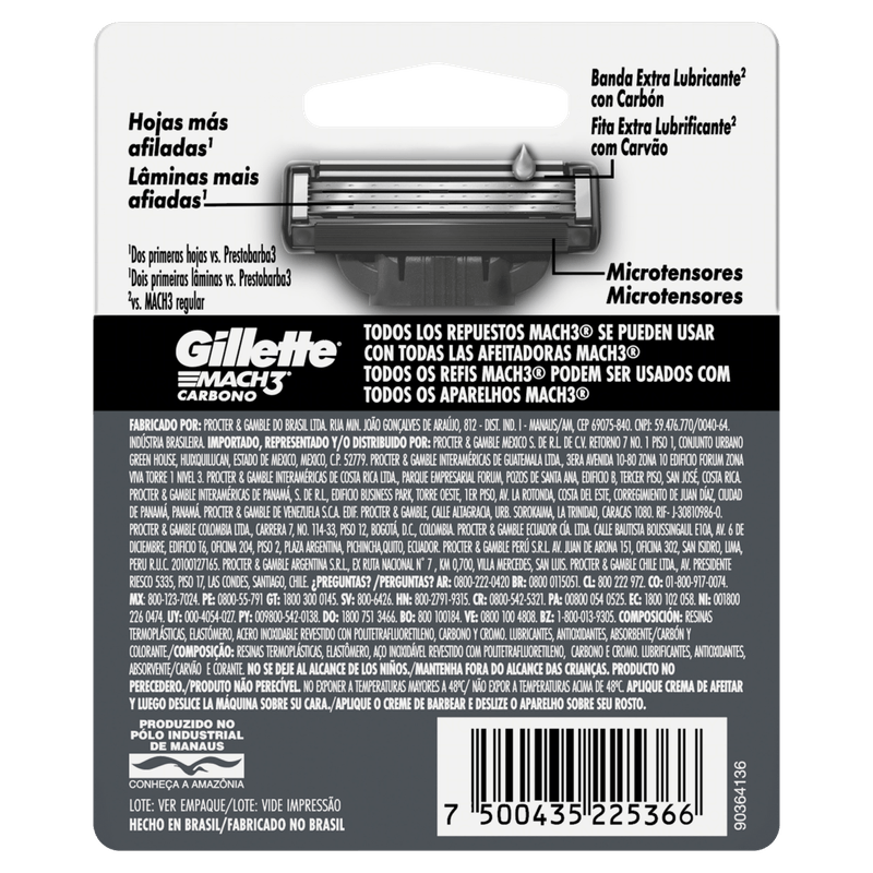 Carga de Aparelho para Barbear Gillette Mach3 Carbono 2 Unidades