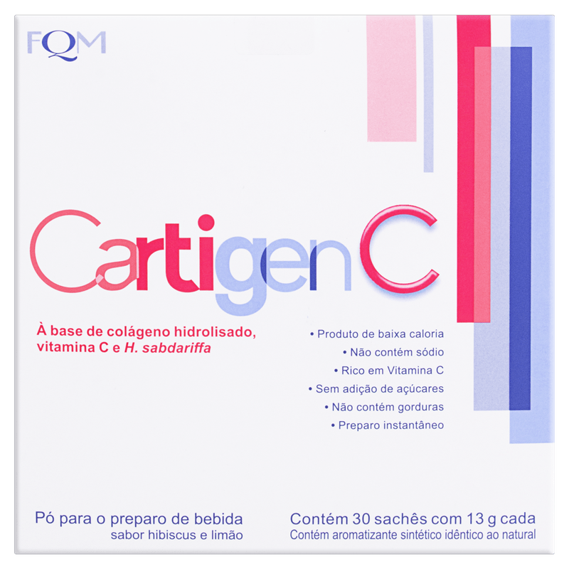 Cartigen C da Farmoquímica é um suplemento em pó com sabor hibiscus e limão, formulado com colágeno hidrolisado, vitamina C e Hibiscus sabdariffa. Cada sachê de 13g oferece 9g de proteínas e 45mg de vitamina C, atendendo 100% da recomendação diária, ideal para fortalecer o sistema imunológico e melhorar a saúde das articulações. Sem sódio, gorduras ou açúcares adicionados, é uma opção de baixa caloria para adultos que buscam suporte nutricional eficaz.