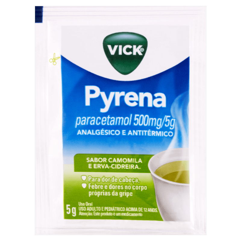 O Chá Vick Pyrena Camomila e Erva-Cidreira é um pó para solução oral que oferece alívio eficaz dos sintomas de gripe e resfriado, como dor de cabeça, febre e dores no corpo. Com 500mg de paracetamol por envelope de 5g, seu princípio ativo atua como analgésico e antitérmico, proporcionando conforto rápido e duradouro. O sabor suave de camomila e erva-cidreira torna o consumo agradável, ideal para adultos e adolescentes a partir de 12 anos que buscam uma solução prática e saborosa para o mal-estar causado por gripes.