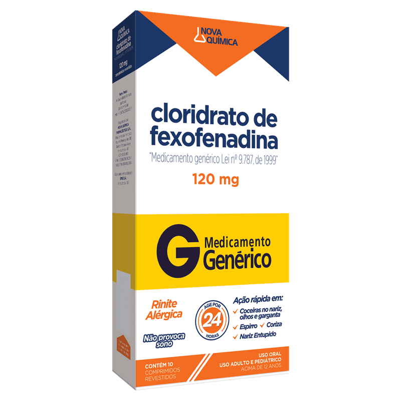O Antialérgico Cloridrato de Fexofenadina Nova Química 120mg é um medicamento eficaz para o alívio dos sintomas de rinite alérgica sazonal e crônica, além de urticária idiopática. Seu princípio ativo bloqueia a ação da histamina, proporcionando redução rápida de espirros, coceira no nariz e olhos, coriza e outros desconfortos alérgicos, com início de ação em cerca de 1 hora e efeito que dura até 24 horas. Indicado para adultos e crianças acima de 12 anos, oferece praticidade com dose única diária, preferencialmente antes das refeições.