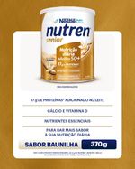 Leite integral, maltodextrina, concentrado proteico de soro de leite, caseinato de cálcio, minerais (citrato de cálcio, sais de magnésio do ácido cítrico, sulfato de zinco, pirofosfato férrico, sulfato de manganês, sulfato de cobre e selenato de sódio), proteína de soja isolada, polidextrose, colágeno hidrolisado, vitaminas (L-ascorbato de sódio, acetato de DL-alfa tocoferila, nicotinamida, D-pantotenato de cálcio, cloridrato de piridoxina, tiamina mononitrato, acetato de retinila, riboflavina, fitomenadiona, ácido N-pteroil-L-glutâmico, colecalciferol, D biotina e cianocobalamina), reguladores de acidez citrato de potássio, hidróxido de potássio e ácido cítrico, aromatizante, emulsificante lecitina e edulcorante sucralose.