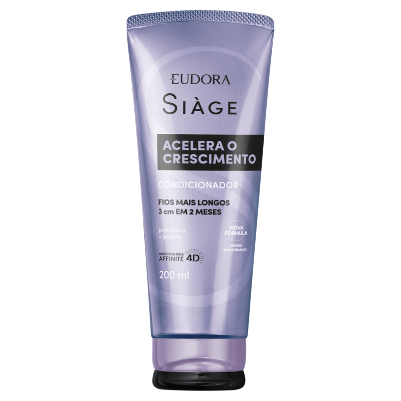 Siàge Acelera o Crescimento, com Prebiótico e Biotina, atua diretamente no equilíbrio do couro cabeludo ativando o metabolismo do fio e estimulando o crescimento.