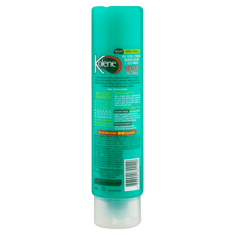O Condicionador Kolene Cachos possui fórmula que combina manteiga de abacate e colágeno, perfeitos para deixar os fios hidratados, macios e evitar os indesejados frizz. Desenvolvido especialmente para cuidar dos cabelos cacheados, naturalmente mais secos, esse Condicionador Kolene é 100% vegano e liberado, isto é, faz uma limpeza mais suave porque não possui ação surfactante. Por isso, condiciona os fios, dando brilho e mantendo o movimento. Essa linha Kolene é perfeita para quem deseja manter a beleza natural e a personalidade dos cabelos cacheados.
