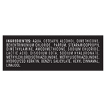 Composição: Aqua, cetearyl alcohol, dimethicone, behentrimonium chloride, parfum, stearamidopropyl dimethylamine, amodimethicone, sodium chloride, lactic acid, disodium EDTA, sodium hyaluronate, methylchloroisothiazolinone, methylisothiazolinone, hydrolyzed keratin, benzyl salicylate, hexyl cinnamal, linalool.