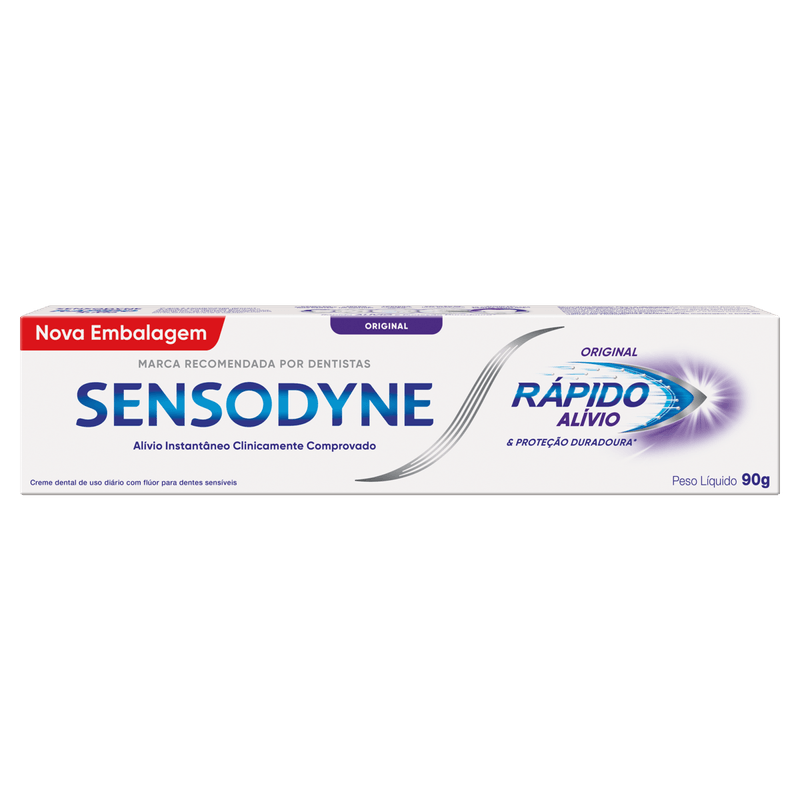 Sensodyne Rápido Alívio possui 2 tamanhos, 50g e 90g.