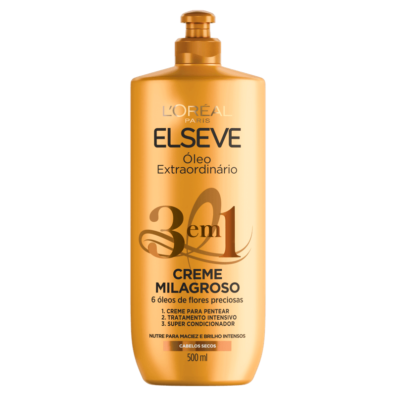 Elseve 3 em 1 Óleo Extraordinário é um creme milagroso que reúne três funções em um só produto, desenvolvido com seis óleos extraídos de flores preciosas.