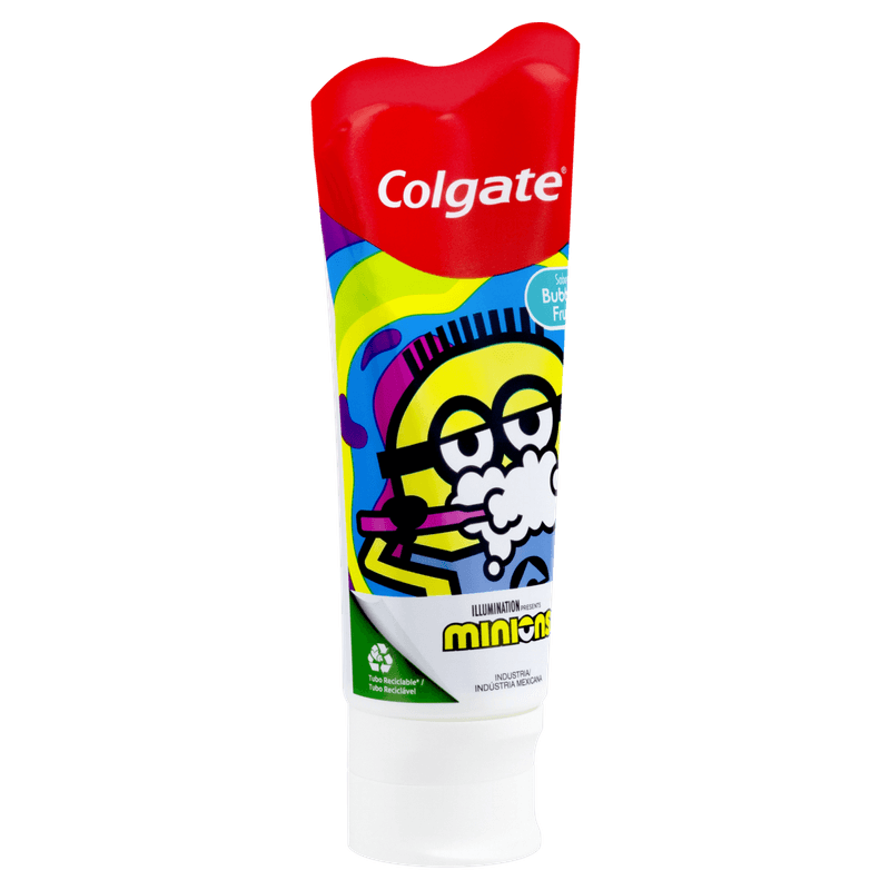 O Creme Dental Infantil Colgate Smiles Minions é apresentado em tubo de 100g, indicado para crianças a partir de 6 anos. Com sabor Tutti Frutti, o produto é desenvolvido para a higiene bucal infantil, promovendo a proteção contra cáries e o cuidado com a saúde da boca de forma suave e adequada para esse público.