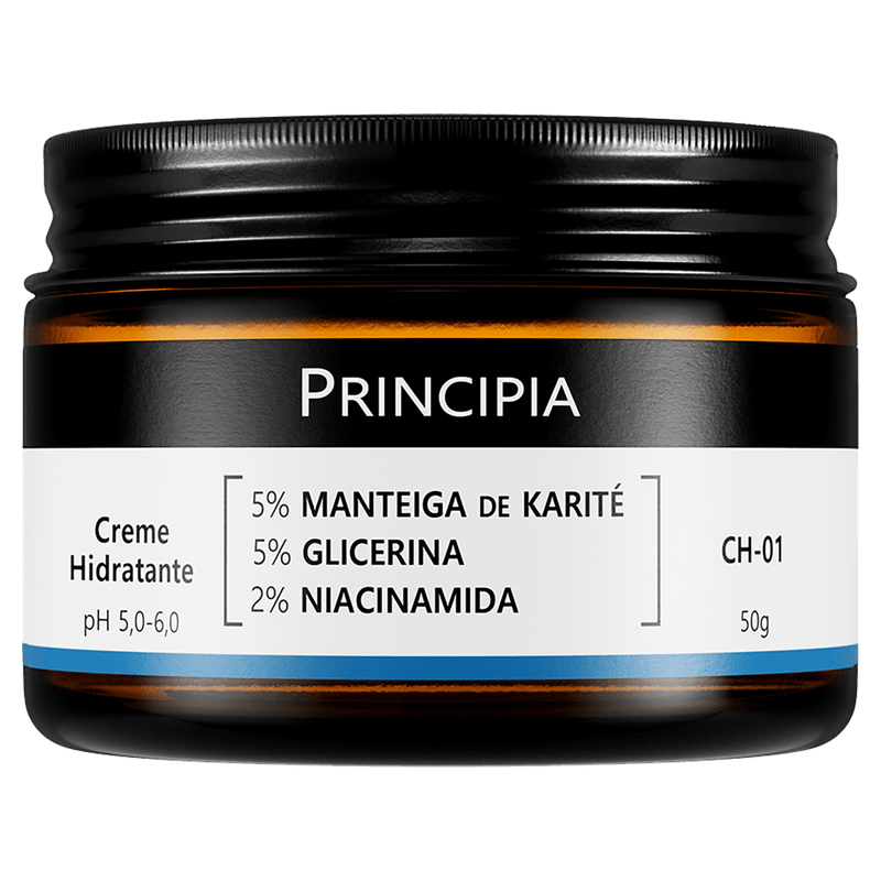 O Creme Hidratante Principia CH-01 é um hidratante facial formulado com 5% de manteiga de karité, 5% de glicerina e 2% de niacinamida, que proporcionam hidratação profunda, aumento da firmeza, elasticidade e viço da pele. Indicado para todos os tipos de pele, inclusive sensíveis e acneicas, sua fórmula livre de parabenos, petrolatos, silicones, sulfatos, fragrâncias e glúten garante cuidado seguro e eficaz, com rápida absorção e textura leve.