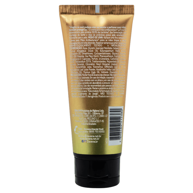 Creme Antibacteriano Mãos Limão-Siciliano Davene La Fruta Bisnaga 65g