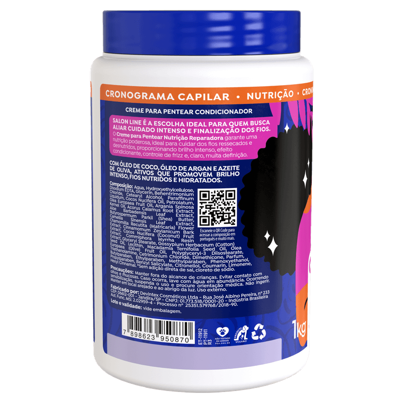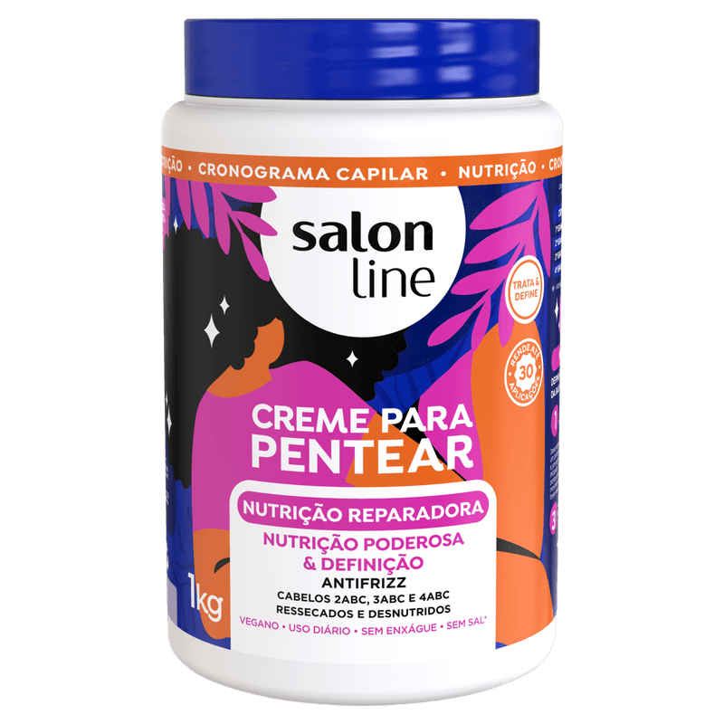 O Creme para Pentear com certeza é um dos produtos preferidos das cacheadas e crespas. Além de ajudar na definição dos cachinhos, memorizando e deixando-os modelados, o creme para pentear também hidrata, desembaraça, dá brilho e protege contra os raios UV. Por ser um produto sem enxágue e sem sal, o Creme para Pentear da Salon Line pode durar dias, até mesmo no day after, podendo ser reaplicado pouca quantidade, também no dia seguinte para reavivar os cachinhos. O Creme para Pentear Definição Intensa, ajuda na definição e memorização dos cachos, no controle de frizz, proporcionando muita hidratação e brilho intenso através de ingredientes incríveis: Óleo de Coco, Óleo de Amêndoas e Mel.