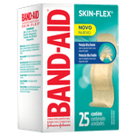 O Curativo Band-Aid Skin-Flex é um curativo adesivo de tecido flexível com almofada absorvente, desenvolvido para proteção de pequenas feridas e cortes. Apresenta adesivo de silicone patenteado, sem látex, que proporciona conforto e flexibilidade, adaptando-se à pele como uma segunda pele.