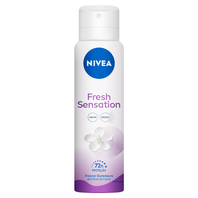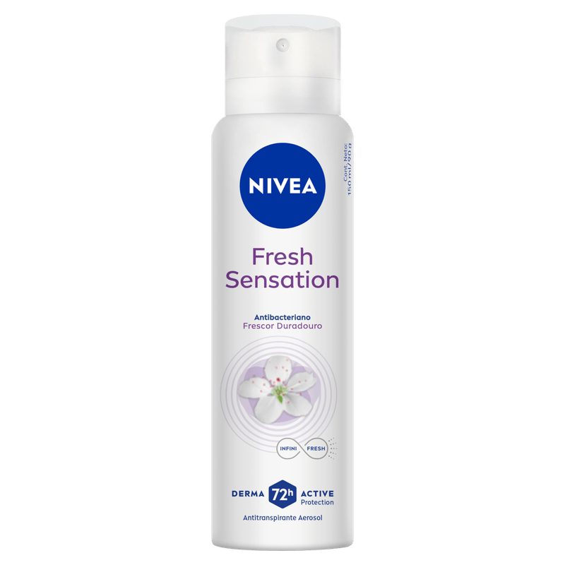 O Desodorante Antitranspirante Aerossol NIVEA Fresh Sensation oferece até 72h de proteção contra suor e mau odor, garantindo frescor duradouro e cuidado com a pele. Sua fórmula exclusiva INFINIFRESH combate 99,9% das bactérias causadoras do mau odor, deixando uma fragrância leve de flores e frutas silvestres.