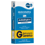 Desloratadina 5mg Genérico EMS é um antialérgico eficaz indicado para o alívio dos sintomas da rinite alérgica, como coriza, espirros, coceira no nariz, ardor e prurido ocular, além de controlar sinais de urticária e outras alergias de pele. Comprimidos revestidos de fácil administração, são ideais para adultos e adolescentes acima de 12 anos que buscam conforto e qualidade de vida durante crises alérgicas.
