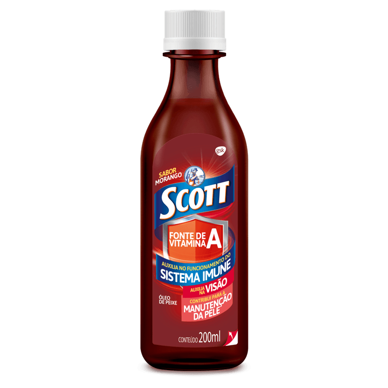 A Emulsão Scott Suplemento Vitamínico Morango 200ml é um polivitamínico oral que combina óleo de fígado de bacalhau com vitaminas A e D, essenciais para a saúde da visão, pele, ossos, dentes e sistema imunológico. Com sabor agradável de morango, é ideal para adultos e crianças acima de 3 anos que buscam suplementação diária prática e eficaz.