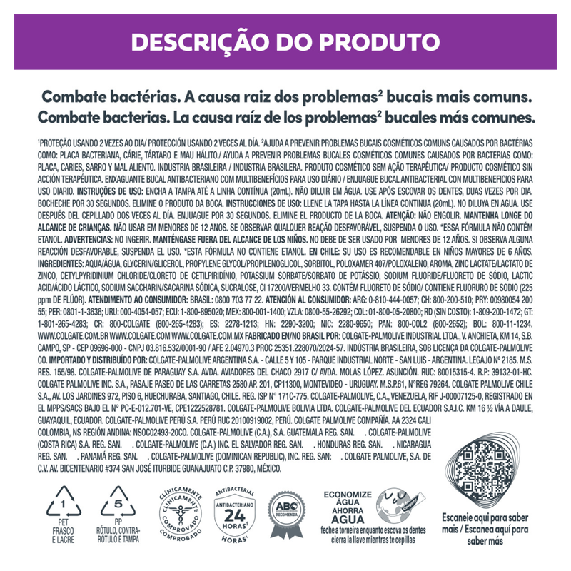 Mantenha seus dentes saudáveis e fortes com o Enxaguante Bucal Colgate Total 12 Gengiva Reforçada. Contém zinco, que fortalece sua gengiva contra bactérias por até 12 horas.