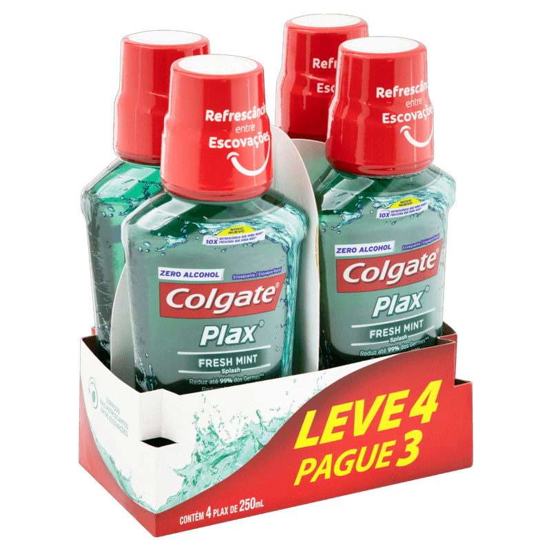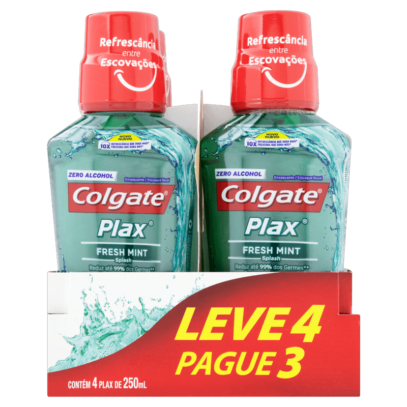 Pack Enxaguante Bucal Zero Álcool Fresh Mint Colgate Plax Frasco Leve 4 Pague 3 Unidades 250ml Cada