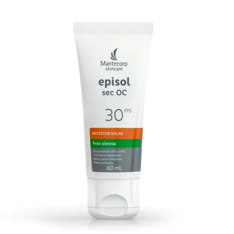 O Episol Sec OC 60g oferece proteção UVA/UVB com FPS 30, incluindo infravermelho A, mantendo a pele protegida ao longo do dia.