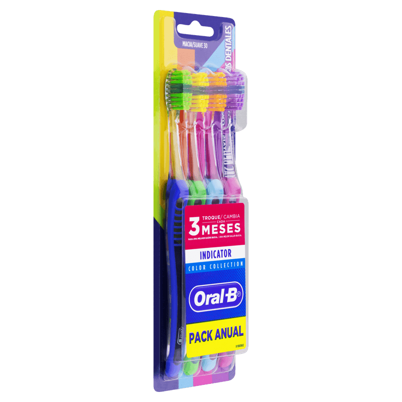 Com a Escova de Dente Oral-B Indicator Color Collection, cuide da sua saúde e tenha a proteção que necessita. Tem cerdas arredondadas que ajudam a cuidar da sua gengiva. As suas cerdas azuis descolorem a meio, sinalizando que está na hora de trocar a sua escova. Tem também cabo ergonômico para um melhor manuseio e controle ao escovar. Para uma melhor experiência, utilize os produtos que Oral-B tem para você.