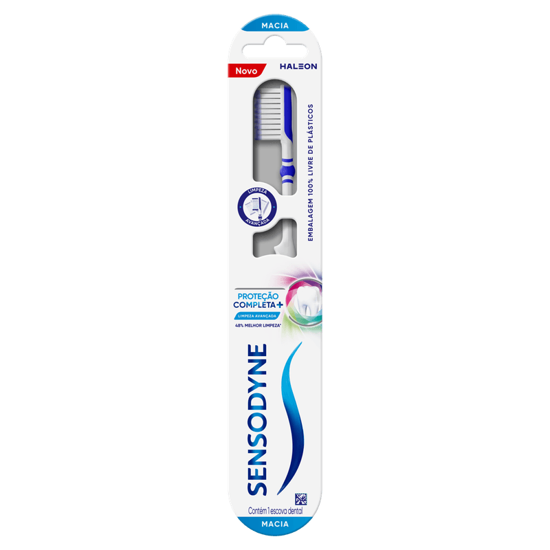 A Escova Dental Sensodyne Proteção Completa oferece uma limpeza avançada. Possui cabeça pequena, haste longa Duoflex para um alcance eficaz, filamentos cônicos que garantem uma limpeza 48% melhor* e cerdas arredondadas para uma limpeza suave e eficaz.