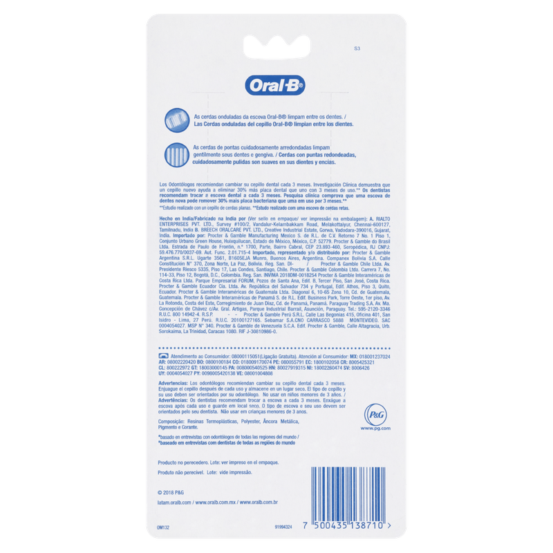 A Escova de Dente Oral-B Color Collection tem cerdas em zig zag para uma limpeza eficaz mesmo em áreas de difícil alcance, enquanto as suas cerdas arredondadas ajudam a cuidar da sua gengiva. Além disso, apresenta um cabo ergonômico para um melhor manuseio e controle e aderência ao escovar. Troque a sua escova de dentes de 3 em 3 meses para uma limpeza mais eficiente. Para uma melhor experiência, utilize os produtos que Oral-B tem para você.