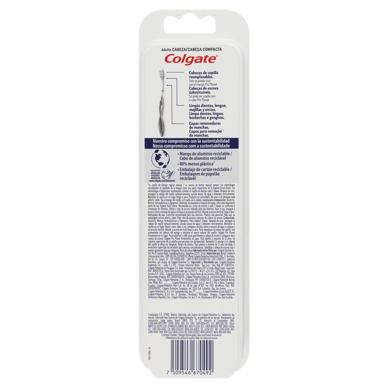 Escova Dental Azul + Refil Macia Whitening Colgate Pro Planet Cabeça Compacta 2 Unidades