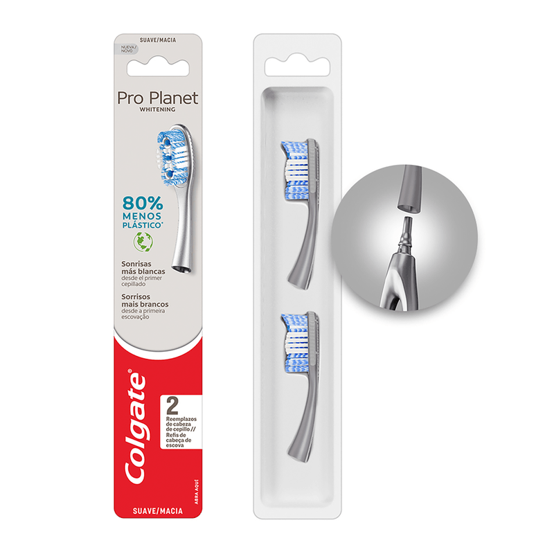Refil Escova Dental Macia Whitening Colgate Pro Planet Cabeça Compacta 2 Unidades