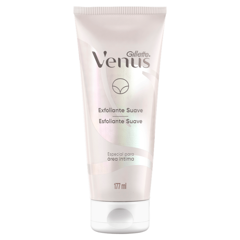 Esfoliante Suave Gillette Venus para Área Íntima: ideal para pré ou pós-depilação, uniformiza a pele e evita pelos encravados. pH balanceado, livre de fragrâncias, corantes, parabenos e silicones. Testado dermatologicamente e ginecologicamente.