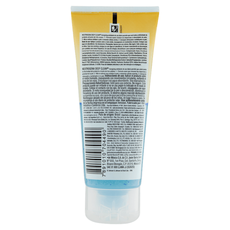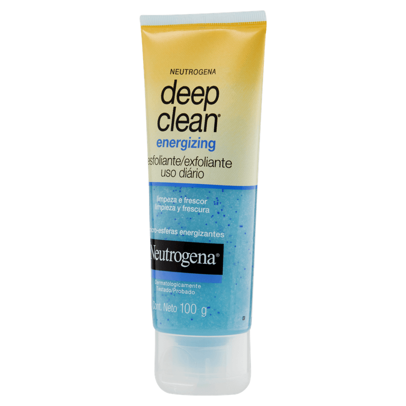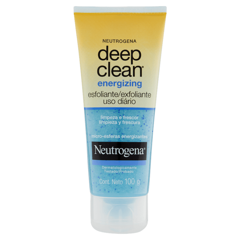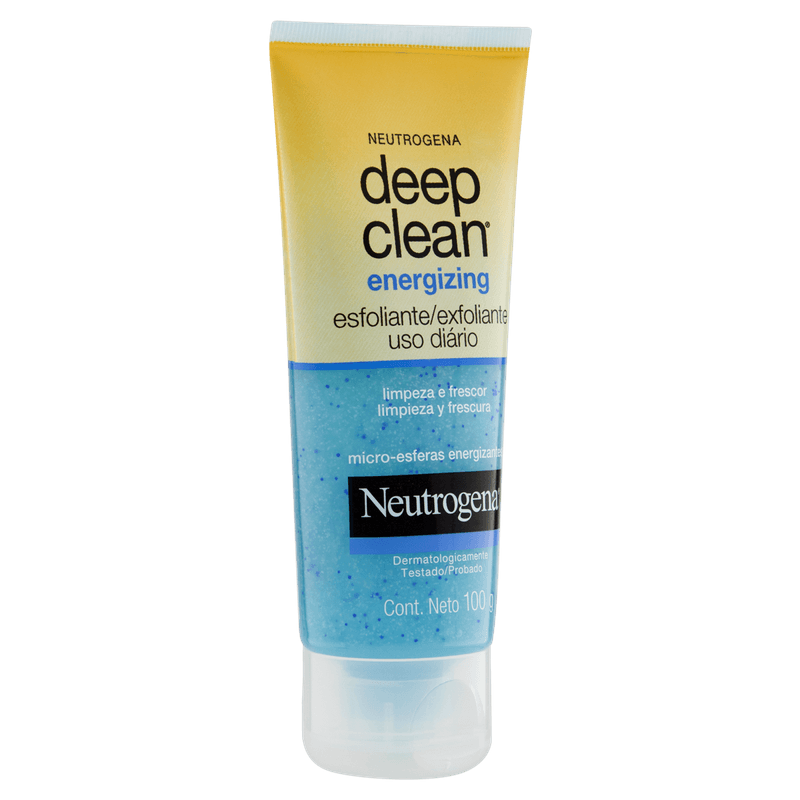 O Esfoliante Facial Neutrogena Deep Clean Energizing 100g é um gel de limpeza diário que promove esfoliação suave com microesferas, removendo impurezas, oleosidade e células mortas sem agredir a pele. Enriquecido com mentol e pantenol, oferece uma sensação refrescante e revitalizante, deixando a pele macia, saudável e com aspecto renovado.