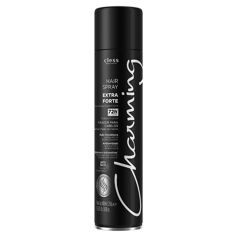 O Spray Fixador Extra Forte Charming é ideal para finalização de penteados mais elaborados ou fixar cabelos mais volumosos ou difíceis de disciplinar.