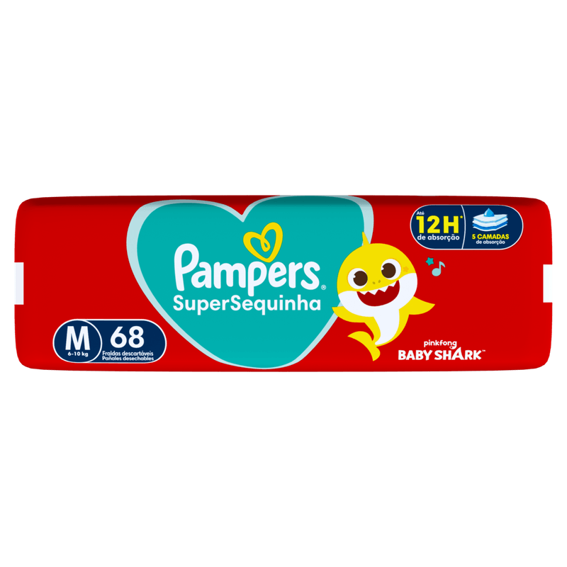 A Pampers Fralda Descartável SuperSequinha Baby Shark M é ideal para bebês de 6 a 10 kg, oferecendo até 12 horas de proteção contra vazamentos com sua tecnologia de barreiras duplas e camada extra de absorção. Com ajuste seguro por fitas adesivas elásticas e toque suave, garante conforto e segurança para a pele delicada do seu bebê. Além disso, os desenhos divertidos do universo Baby Shark tornam o momento do cuidado ainda mais especial e lúdico. Perfeita para pais que buscam qualidade, praticidade e proteção prolongada.
