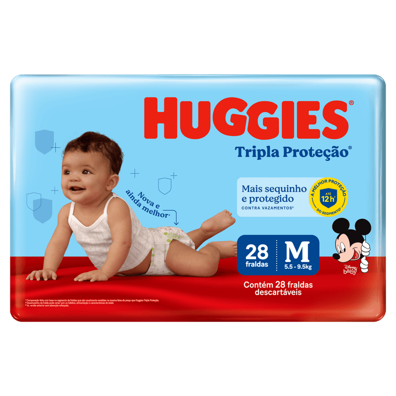 A Fralda Infantil Descartável Huggies Tripla Proteção tamanho M é indicada para bebês com peso entre 6 e 9 kg, oferecendo proteção e absorção para uso durante o dia e a noite. Desenvolvida para proporcionar conforto e segurança, é ideal para manter o bebê seco por longos períodos.
