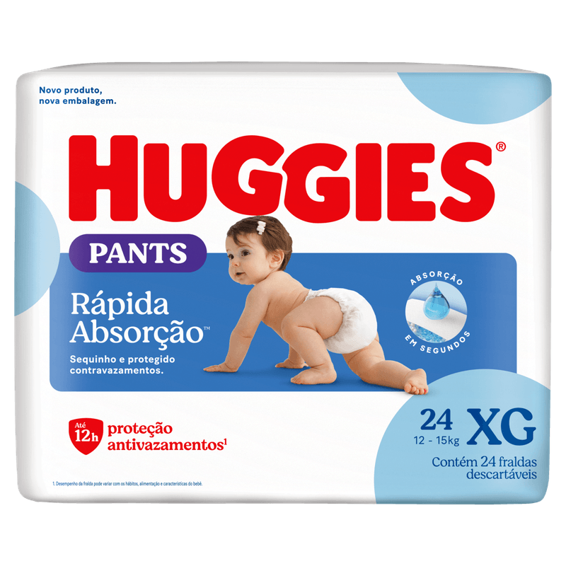 A Fralda Descartável Infantil Pants Huggies Rápida Absorção tamanho XG foi desenvolvida para oferecer máxima proteção e conforto para bebês ativos. Com 24 unidades, seu formato tipo calça facilita na hora de vestir, proporcionando mais praticidade no dia a dia. Possui tecnologia de rápida absorção, que mantém a pele do bebê sequinha por muito mais tempo, evitando assaduras e vazamentos. Ideal para uso durante o dia e a noite, a fralda Huggies Pants veste como roupinha e garante liberdade de movimentos com segurança.