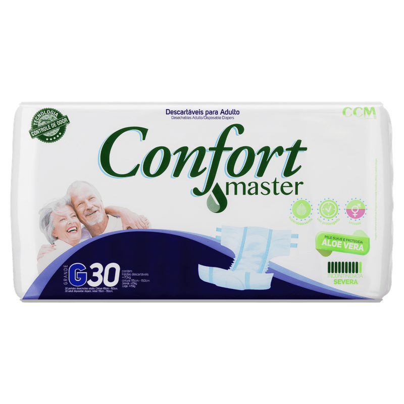 Com capacidade para 30 unidades, a Fralda Geriátrica Confort Master G é a escolha certa para quem busca alta absorção, conforto e proteção confiável no cuidado diário.