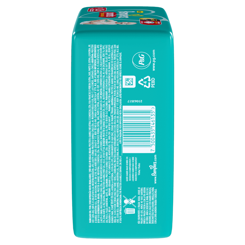 A Fralda Pampers Pants Ajuste Total tamanho P, com 26 unidades, é ideal para bebês de 3 a 8 kg que precisam de conforto e proteção durante o dia e a noite. Com cintura elástica 360° e sistema de ajuste inteligente, ela facilita o vestir mesmo com o bebê em movimento, garantindo um ajuste seguro e confortável. Seus canais de ar mantêm a pele respirável e seca, enquanto o indicador de umidade avisa o momento certo para a troca, oferecendo até 12 horas de proteção contra vazamentos.