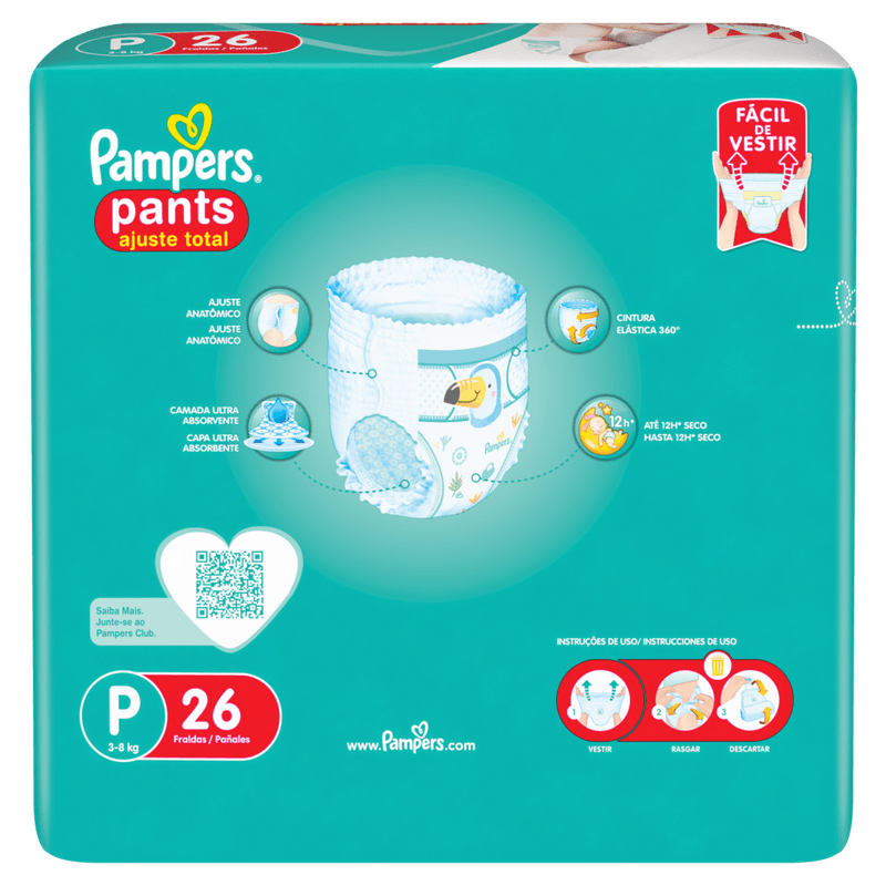 Fralda Pampers Pants Ajuste Total P – 26 Unidades