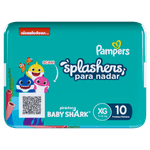 A Fralda Pampers Splashers Baby Shark XG é especialmente desenvolvida para bebês de 11 a 15 kg que frequentam piscinas, praias e parques aquáticos. Com ajuste elástico 360º na cintura, veste como uma roupinha de banho, garantindo conforto e liberdade de movimento. Seu diferencial está na tecnologia antivazamento com barreiras duplas e alta absorção, que evita inchaço em contato com a água, mantendo o bebê seco e protegido.
