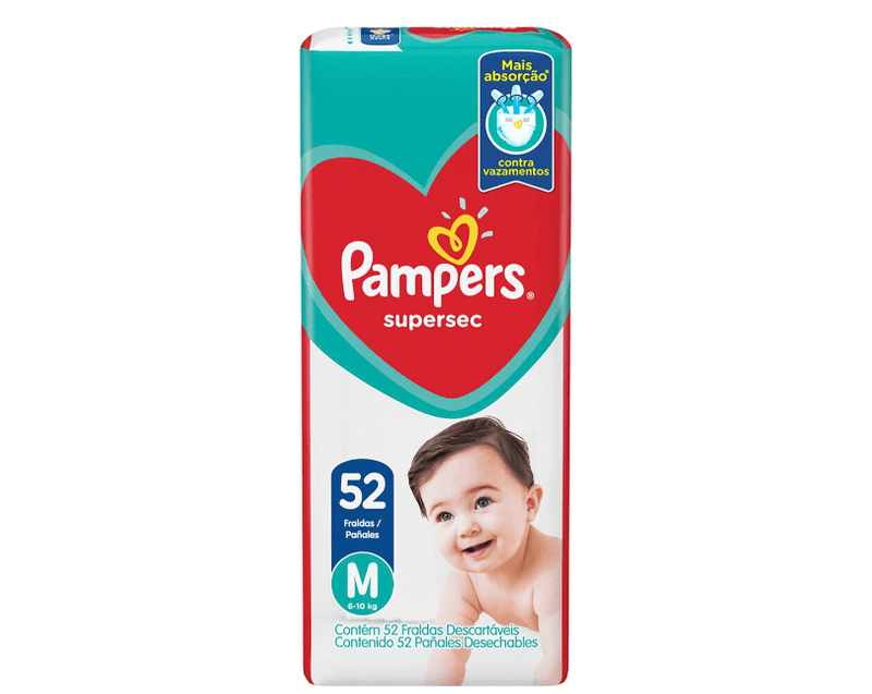 A Fralda Pampers Supersec é uma fralda infantil descartável tamanho M, indicada para bebês com peso aproximado entre 6 e 9 kg. Desenvolvida para oferecer proteção e conforto, é ideal para uso diário, garantindo absorção eficiente e ajuste anatômico ao corpo do bebê.