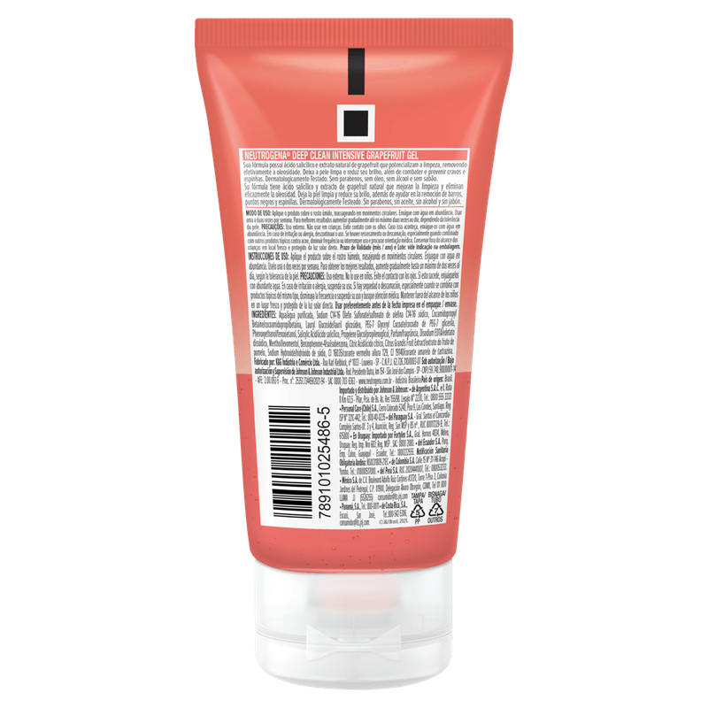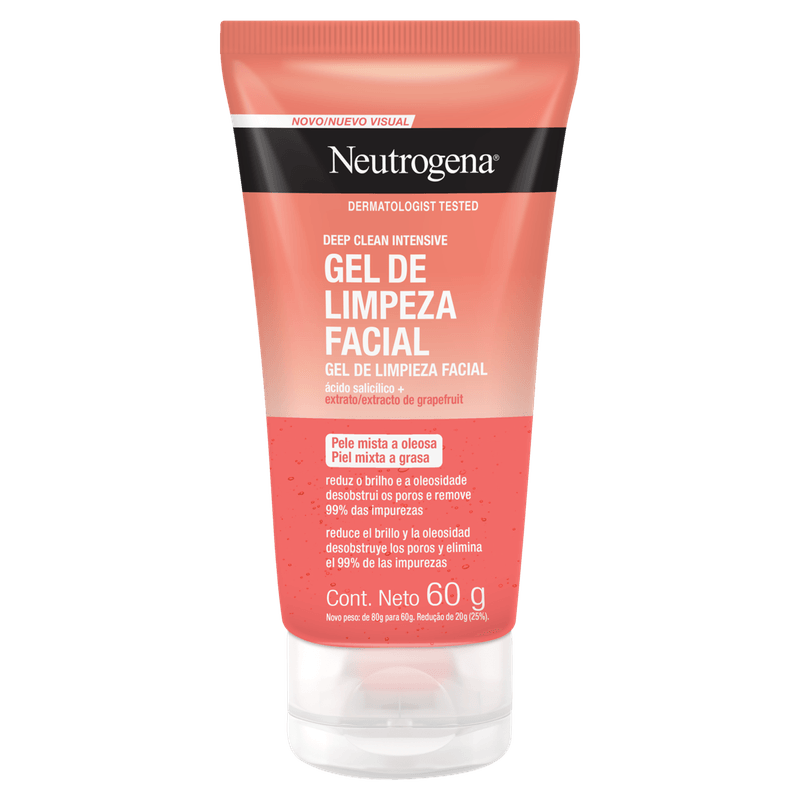 O Gel de Limpeza Facial Neutrogena Deep Clean Intensive 60g é indicado para todos os tipos de pele e oferece uma limpeza profunda que remove 99% das impurezas e oleosidade. Sua fórmula com ácido salicílico e extrato natural de grapefruit penetra nos poros, eliminando resíduos e células mortas, enquanto suaviza a pele e previne ressecamento e irritações.