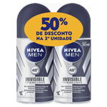 Pack Antitranspirante Roll-On Invisible Black & White Nivea Men 2 Unidades 50ml Cada Grátis 50% de Desconto na 2ª Unidade