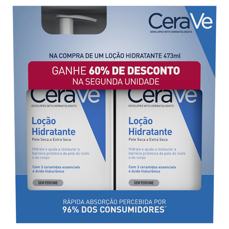 Kit Loção Hidratante Corporal CeraVe é a escolha ideal para quem busca hidratação intensiva e de longa duração para a pele. Com duas unidades de 473ml cada, o kit oferece cuidado completo e eficaz para a pele do corpo, promovendo uma sensação de maciez e suavidade.