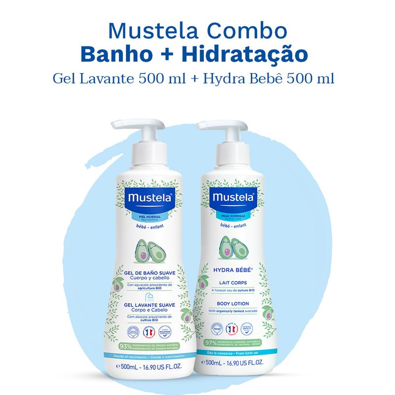 Kit Mustela Banho e Hidratação Gel Lavante 500ml + Hydra Bebê 500ml é