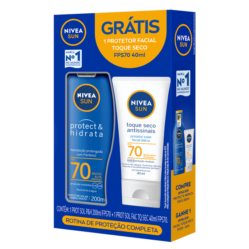 Nivea Sun Protetor Solar Protect & Hidrata FPS 70: é um item indispensável para a proteção da pele durante a exposição solar.